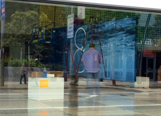В преддверии мероприятия выставочный комплекс ударными темпами готовится принять посетителей Worldwide Developers Conference 2014. Наружная реклама, растяжки в интерьере и слоган про строчку кода и мир, который можно изменить идут в комплекте. И вот впервые на фото – логотип iOS 8. Баннер синего цвета и цифрой «8» размещен в холле Moscone West на первом этажа.