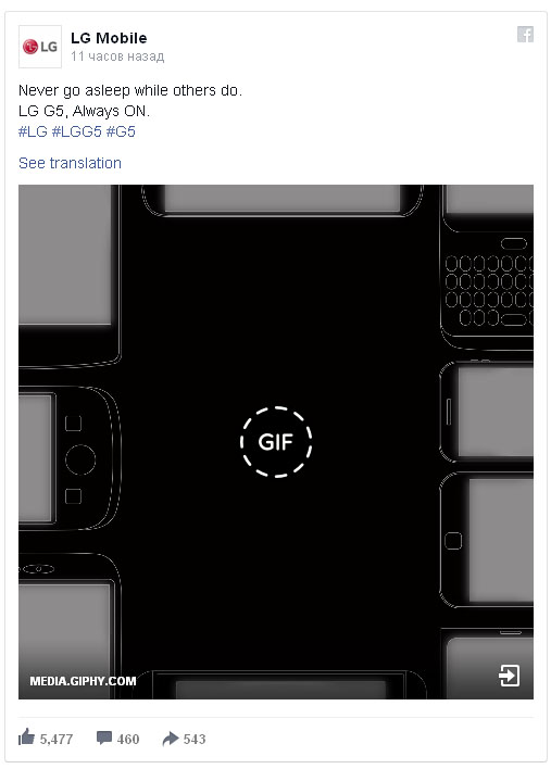 Флагман LG G5 выйдет уже меньше, чем через две недели, поэтому производитель решил порадовать подробностями из первых рук. На официальной странице LG в Facebook появилось сообщение о неожиданной характеристике смартфона: экран дисплея будет включен всегда.