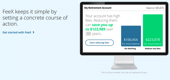 Компания FeeX сама себя называет «Робином Гудом отчислений» — этот сервис помогает выявить скрытые комиссии в обслуживании инвестиционных вкладов и в пенсионных фондах, а также показывает, как можно избежать дополнительных расходов. По данным самой компании, основанной в 2012 году Йоавом Зурелем, Дэвидом Вейшем и сооснователем навигационного приложения Waze Ури Леваном, за время своего существования ей уже удалось сэкономить своим клиентам $277 млн. В августе 2014 года она привлекла $6,5 млн. на третьем этапе инвестиций — в планах выход на рынок США.