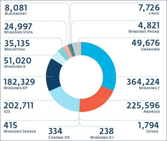 Распределение ОС пользователей, которые стали жертвами веб-сайтов, скомпрометированных Linux/Cdorked