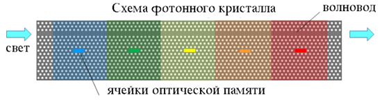 Исследователи из крупнейшей японской телекоммуникационной компании Nippon Telegraph and Telephone (NTT) показали, что работу оптоволоконных сетей можно значительно оптимизировать, используя ячейки оптической памяти. Недавно они опубликовали статью, которая включает в себя описание рабочей 105-битной схемы оптической памяти с произвольным доступом, изготовленной из тщательно структурированной серии фотонных кристаллов. Каждая ячейка может блокировать или пропускать свет со своей длиной волны.