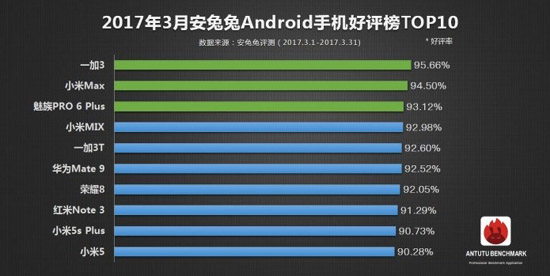 Среди Android-девайсов наиболее востребованным оказался прошлогодний флагман OnePlus 3, при этом его обновленный вариант OnePlus 3T занимает только пятую позицию. Также популярностью среди китайских покупателей пользуется Xiaomi Mi Max и Meizu Pro 6 Plus. На четвертом месте находится керамический смартфон Xiaomi Mi Mix.
