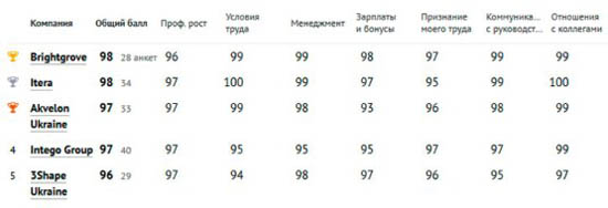 Портал «DOU» опубликовал итоги рейтинга ИТ-компаний, составленного на основе анонимного опроса сотрудников. На сегодняшний день собрано уже более 42 тысяч активных оценок 461-й компании от почти 6 тысяч сотрудников.