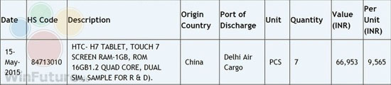 Не так давно мы писали о том, что HTC работает над недорогим 7-дюймовым планшетом. Тогда было известно лишь его кодовое название — H7. Однако сейчас этот девайс появился в базе данных индийского сайта Zauba, отслеживающего местный импорт и экспорт.