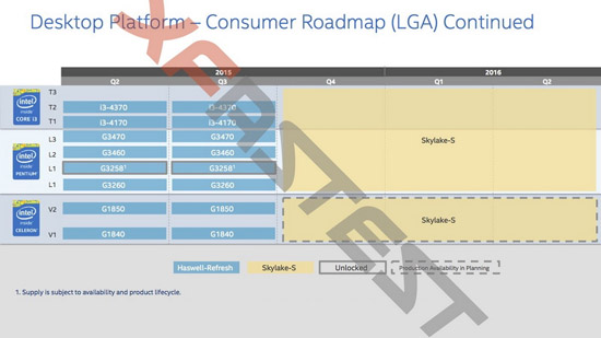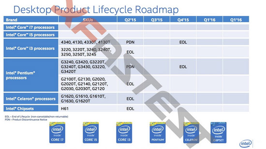 Ещё ниже расположено царство бюджетных процессоров Intel, которое делится на категории T (Traditional), L (Low End) и V (Value). В отличие от более мощных решений, процессоры, относящиеся к этим категориям, не будут заменены моделями на базе архитектуры Skylake в августе этого года. Переход на новую архитектуру здесь состоится лишь где-то в четвёртом квартале, когда новый техпроцесс будет уже достаточно отлажен, чтобы быть рентабельным в этих сегментах рынка центральных процессоров.