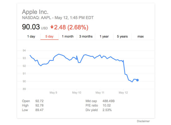 В случае с акциями Apple причина разочарования инвесторов — падение выручки и прибыли тайваньской компании Foxconn Technology, которая является крупнейшим сборщиком iPhone в мире. Чистая прибыль Foxconn сократилась в первом квартале 2016 года на 9,2%, до $847 млн. Это добавило инвесторам опасений, что мировые продажи iPhone замедляются.