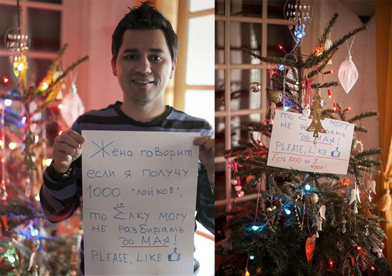 Так вот, ему удалось сделать это, он набрал необходимое количество лайков и теперь может не выносить елку.