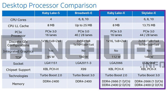 Официальный анонс моделей Skylake-X и Kaby Lake-X намечен на третий-четвёртый кварталы 2017 г. Новые процессоры будут использовать один и тот же набор системной логики (вышеупомянутый X299), в состав которого войдут 24 линии PCI Express 3.0, 10 каналов SATA 6 Гбит/с и 8 каналов USB 3.0.