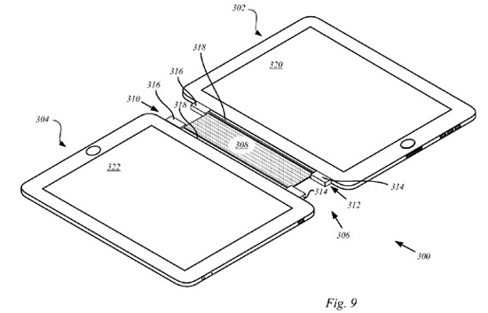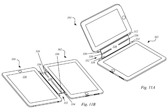С помощью магнитов в Apple предлагают присоединять планшеты друг к другу, создавая некое подобие полностью сенсорного ноутбука. При этом экран одного iPad может играть роль клавиатуры или графического планшета, а второй будет служить главным дисплеем.