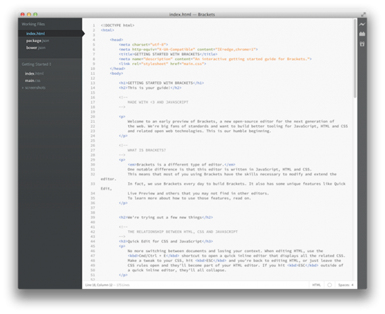 Кроссплатформенное приложение для написания кода, поддерживаемое Adobe и полностью бесплатное.