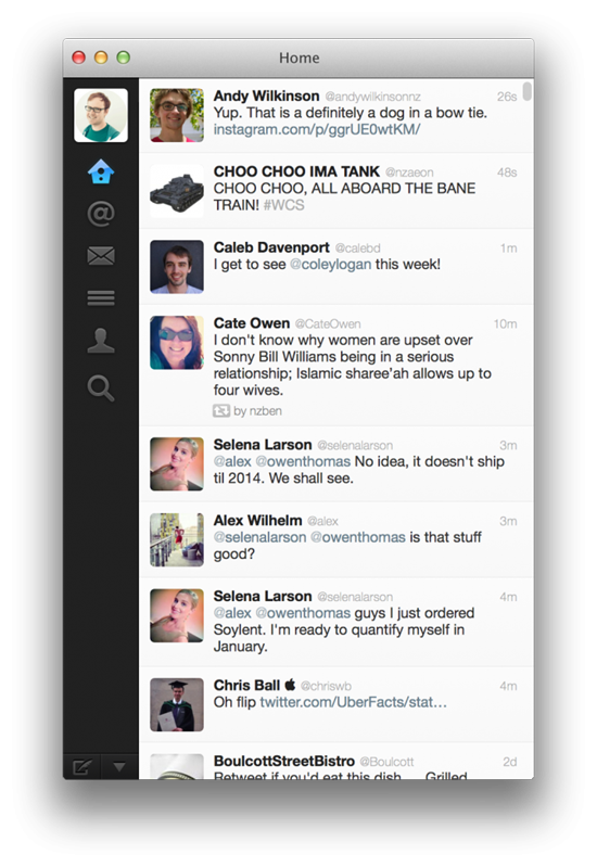 В свою бытность пользователем Windows, Оуэн был адептом Metrotwit, но на Mac официальное приложение Twitter настолько хорошо (и бесплатно), что никаких других вариантов даже и не хочется.
