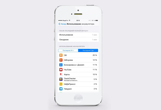 Определите, какое приложение потребляет больше всего энергии, и как долго оно было активно. Может быть, пришло время изменить подборку любимых программ.