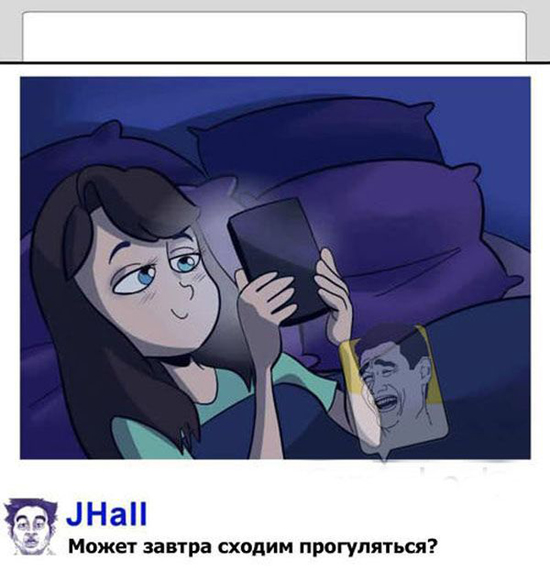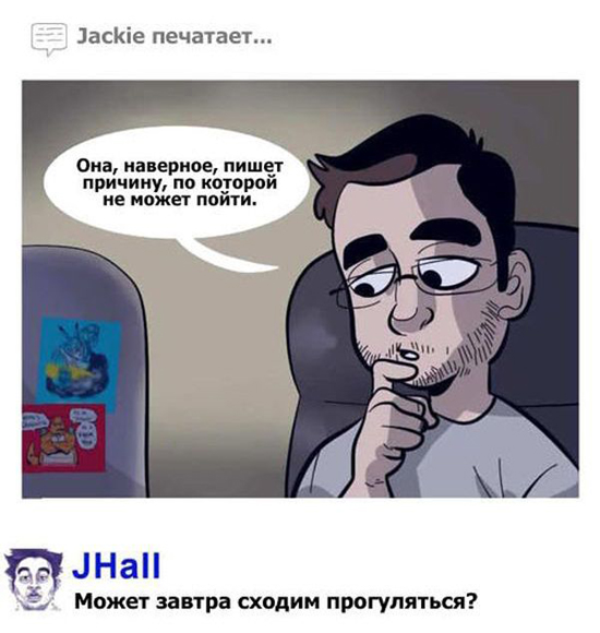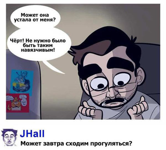Довольно забавный жизненный комикс о переживаниях и волнении, которое захлестывает нас при переписке с понравившимся человеком в онлайне.