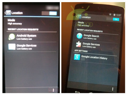 Сразу несколько источников опубликовали фотографии новых системных настроек геопозиционирования, которые в Android 4.4 KitKat заменят существующие сейчас раздельные переключатели определения местоположения по GPS и по окружающим сетям передачи данных. Это логичный шаг, который от разработчиков ждали уже не первый год — наверняка, на изменения их сподвиг новый набор геолокационных API Fused Location Provider (представленный на Google I/O 2013), позволяющий более точно и просто определять не только положение пользователя в пространстве, но и тип его передвижения: пешком, на велосипеде или на автомобиле. Теперь пользователю дадут возможность выбрать из трех простых режимов геолокации, находящихся в едином подменю Location:
