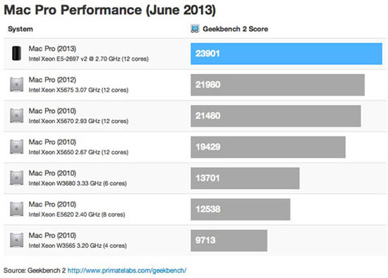 Что же касается сравнения нового Mac Pro, то тесты показывают, повышение производительности в большинстве критериев, начиная от небольших улучшений в определенных задачах и до существенных улучшений в других.
