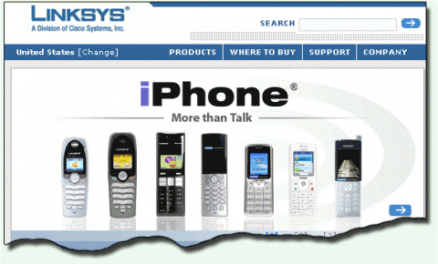 Затем наступил 2007 год, и на волне феноменального успеха смартфонов Apple компания Cisco обратилась в суд с иском о неправомерном использовании товарного знака iPhone. Приведённое выше изображение использовалось в суде в качестве доказательства того, что товарный знак не просто был зарегистрирован, но и активно использовался при выпуске продукции Cisco. По результатам судебного разбирательства Apple продолжила использовать товарный знак iPhone, именно с этим наименованием в настоящее время ассоциируется компания из Купертино.