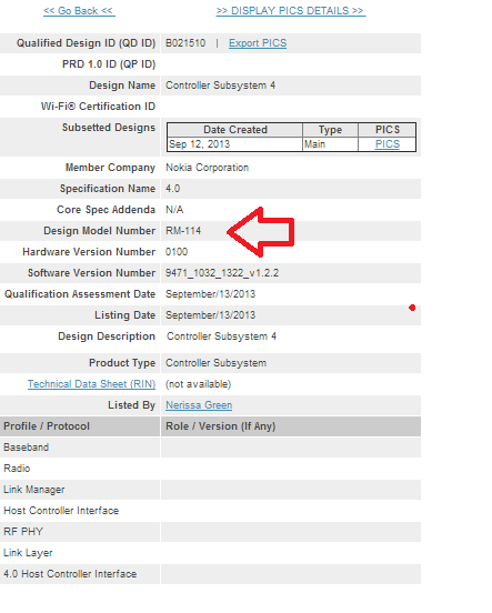 На этот раз новинка засветилась на сайте организации Bluetooth SIG (модель RM-114) и в результатах бенчмарка GFX (модель RX-114).