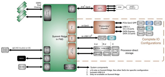 Блок-схема Summit Ridge. Большинство функций интегрировано в процессор