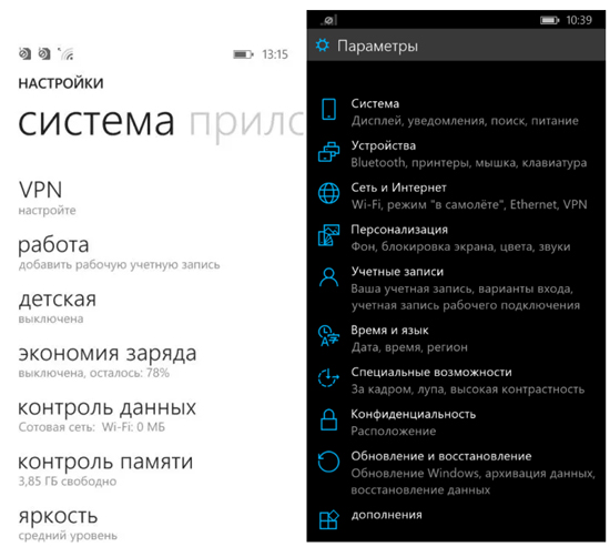 Ориентироваться в едином разделе настроек Windows Phone сложно. Например, найти включение тихих часов в записной книжке Cortana, когда программа работает лишь в нескольких регионах, интуитивно невозможно. С Windows 10 с неудобствами покончено: пункты рассортированы и собраны по группам.
