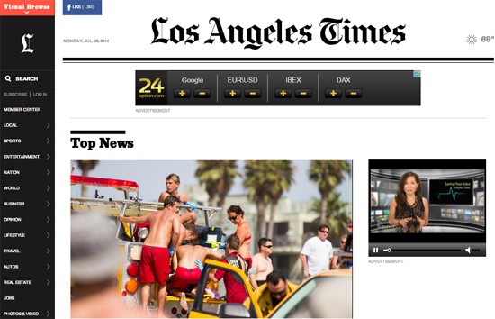 Редизайн сайта LA Times оставляет пользователю некий выбор. Новости, статьи и события разделены тематически, что дает читателям возможность контролировать материал для прочтения. Это создаёт некоторые трудности — переход не так бесшовен, как на вышеперечисленных сайтах.