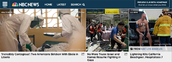 Такой гигант как NBC News использует немного другой подход. Читателю после прочтения статьи предлагают просмотреть напрямую или косвенно относящиеся к теме материалы, таким образом, выстраивается некая сюжетная линия — поскольку ничего, кроме прокрутки, делать не надо, пользователь может прочесть несколько десятков статей, не отрываясь.