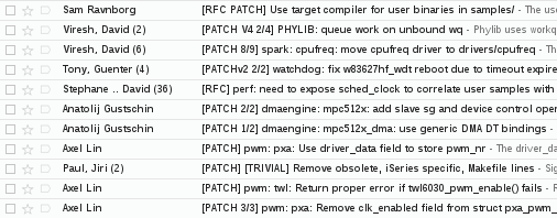 Затем идет «часть реального скриншота с моего Pixel со шрифтом, который я реально использую и нахожу вполне читаемым на этом экране. Да, он маленький, зато читаемый, и он достаточно мал, чтобы видеть 50 писем одновременно (это фрагмент моей папки lkml [Linux Kernel Mailing List] в Gmail в компактном виде в Chrome, если кому-то интересно».