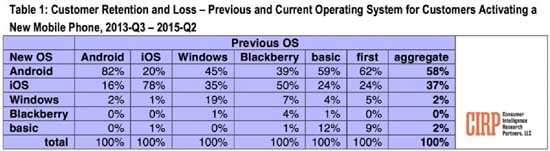 Выяснить правду поможет аналитическая компания CIRP. Оказалось, что около 82 % пользователей Android остаются преданными операционной системе от Google, когда наступает пора покупать новый смартфон. Для iPhone количество таких пользователей составляет 78 % — остальные либо перемещаются на Android, либо (на крайний случай) — на Windows Phone.