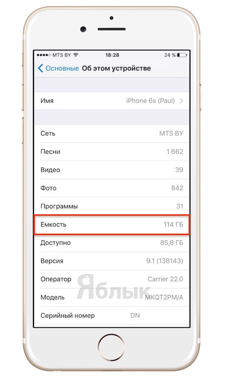 Другой пример: iPhone 6s 128 Гб – пользователю доступно…. 114 Гб. Минус 14 (!!!) Гб?