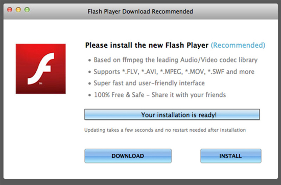 Попав на такой сайт, ничего не подозревающий пользователь может согласиться на обновление условного Adobe Flash, но вместо этого получить рекламный троян Genieo, который распространяется в Сети в качестве плагина для браузеров Chrome, Firefox и Safari.