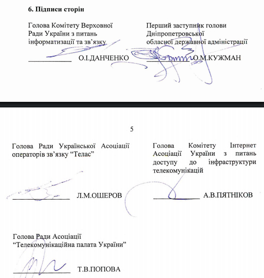 - Меморандум - это договор о намерениях повысить качество взаимодействия между сторонами-подписантами. В нем высказано намерение выработать единую позицию по вопросам формирования единых подходов в принципах и механизмах защиты объектов инфраструктуры, прав и обязанностей операторов и провайдеров (они в Законе Украины «О телекоммуникациях» и других нормативных актах уже прописаны).