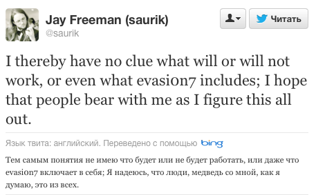 Первая причина. Сам Saurik, владелец и разработчик Cydia, был удивлен обстоятельствами, которые побудили выложить джейлбрейк в паблик именно сегодня.