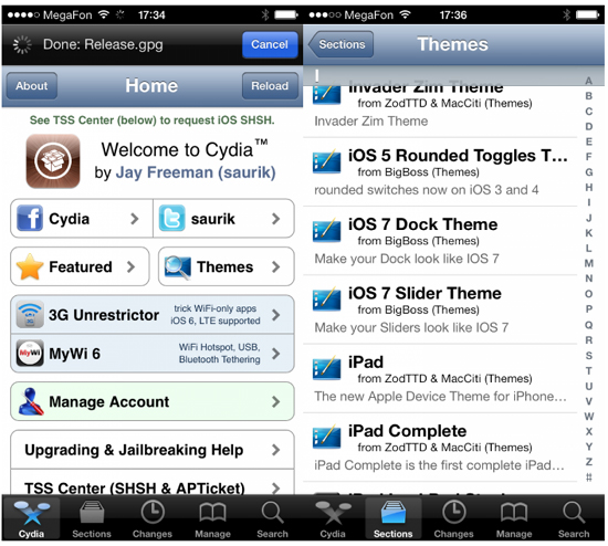 Причина вторая. Ваши любимые твики так же еще не готовы для использования на iOS 7, не говоря уже об устройствах типа iPhone 5s; 5c; iPad Air, iPad mini Retina.
