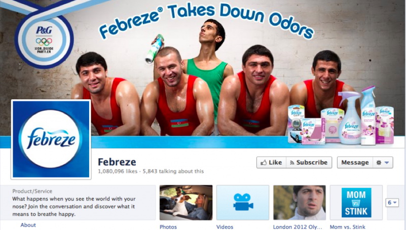 Более миллиона подписчиков удалось заполучить производителю освежителя воздуха, оказавшись в нужном месте в нужное время. Бренд Febreze разрекламировал себя, использовав раздевалку команды Азербайджана после тренировки во время Олимпийских Игр