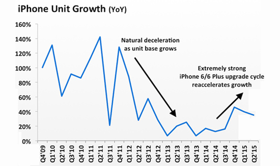 Во-вторых, появление Force Touch в будущих моделях iPhone слабо соответствует критерию «инновационного прорыва». Переход от устройств со средней диагональю экрана к фаблетам или же появление дактилоскопического сканера в кнопке Home действительно произвели в свое время впечатление на аудиторию. Но сенсорный дисплей с регулируемой силой нажатия, будучи представлен в новеньком MacBook и Apple Watch, был встречен с прохладой и непониманием, по причине чего популярности на данный момент не снискал. А поскольку веских аргументов в пользу появления в iPhone 6S иных новинок не наблюдается, то и предпосылок для хоть какого-нибудь роста продаж, не говоря уже про взрывной, нет.