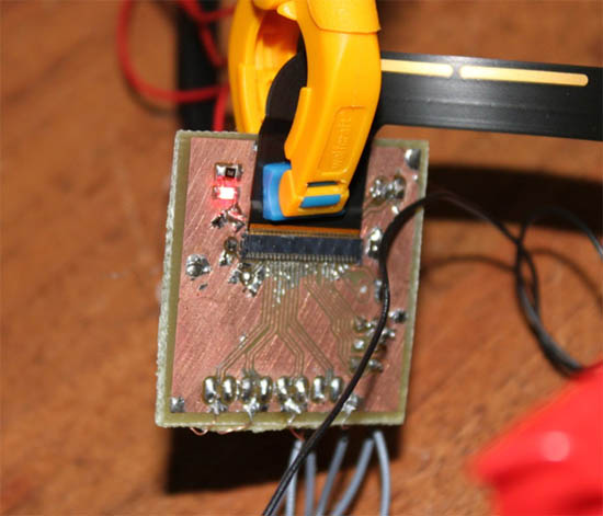 Сама электроника ЖК-панели может запитываться непосредственно через интерфейсную плату, ей нужно всего 3,3 В на 500 мА. Но для подсветки экрана требуется какой-то внешний источник питания, потому что подсветка потребляет до 4,4 Вт. Покопавшись в схемах iPad 3, автор сумел найти информацию, что подсветка экрана состоит из 12 рядов белых светодиодов по 6 штук в каждом, и все вместе им требуется источник питания на 20 В. В экспериментальной модели автор не заморачивался с красивой схемой, а просто поставил по резистору 68R на каждый катод, так что каждый ряд светодиодов тянул по 17 мА. Напряжение 20 В можно получить из пятивольтного источника через повышающий конвертер TPS61175.