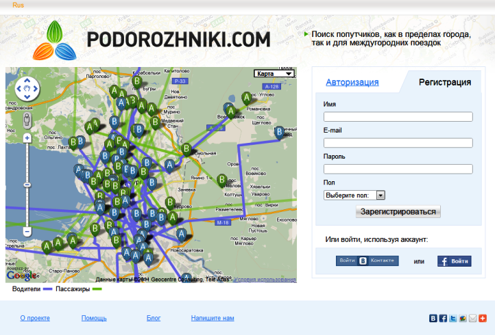 Вероятно, кто-то уже слышал или даже сталкивался с таким явлением как carpool. В Европе, США и странах Азии (Китай в особенности) явление это развивается экспоненциально, вплоть до того, что выделяются отдельные полосы для водителей с попутчиками. Заглянем, все же, в Wikipedia: «Carpool (по-русски чаще всего называется кар пул) — безвозмездный провоз попутчиков, обычно при ежедневных поездках. При широком использовании позволяет снизить нагрузки на транспортные системы городов.». Вроде бы все понятно, однако, стоит заметить, что такое определение не совсем корректно. Как правило, это совсем не безвозмездный, а очень даже возмездный провоз (подвоз) – обычно пассажиры оплачивают водителям бензин. Довольно таки правильное и логичное явление, на наш взгляд. Ведь каждый день сотни тысяч людей преодолевают один и тот же привычный маршрут на работу, учебу или куда-то там еще. Кто-то делает это на своем 5-ти местном автомобиле, скучая в заторах, а кто-то намеревается протиснуться в маршрутку или метро, пытаясь добраться в том же направлении. Разумно ли так поступать? Разумно ли раз за разом гонять более ста лошадиных сил для одного человека и потом удивляться, какой грязный воздух, как много пробок и как дорого обходится бензин? Вероятно, многие согласятся с тем фактом, что в большинстве случаев - нет. Но не будем о грустном, лучше о позитиве! В сети появился замечательный ресурс – podorozhniki.com, суть которого объединить водителей и пассажиров, которым по пути. И, надо сказать, объединяет он очень даже хорошо.