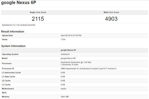 А недавно один из новых смартфонов Nexus всплыл в бенчмарке Geekbench. И, судя по нему, новинка станет преемником Nexus 6P и получит чипсет Snapdragon 820, 4 ГБ RAM и операционную систему Android N.