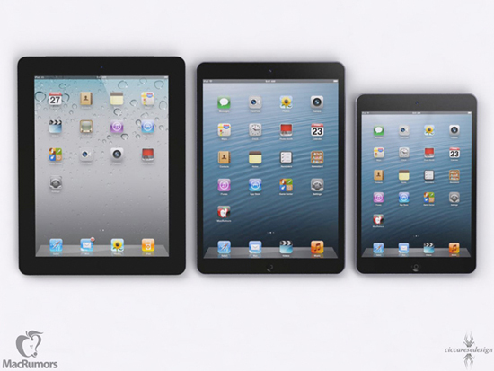 В представлении художников из CiccareseDesign, следующий планшетник Apple будет выглядеть так. На картинке (слева направо): iPad 4, iPad 5, iPad mini.