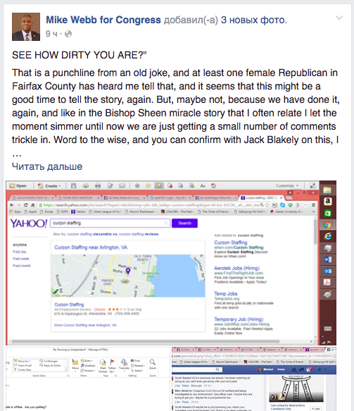 Майк Уэбб участвует в кандидатской гонке в Конгресс США от штата Вирджиния. Для своей кампании политик завел специальную страницу на Facebook, где делится всеми новостями с избирателями. Недавно он опубликовал скриншот своего рабочего экрана, чтобы проиллюстрировать пост в соцсети. Однако забыл закрыть вкладки с сайтами для взрослых, и весь интернет узнал о его распущенности.
