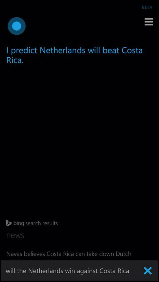 Пока разработчики «ВКонтакте» думают, когда им лучше исправить баг, более точную информацию о финале ЧМ-2014 можно получить от голосового помощника Windows Phone по имени Cortana: она безошибочно предсказала результаты побед в 12 матчах.