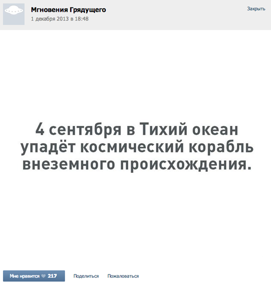 Последний, седьмой пост, на котором «Мгновения» закончили свои предсказания, оказался связан с инопланетянами.