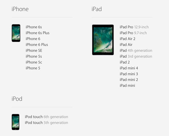 Список устройств, которые поддерживает iOS 10: