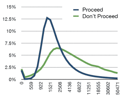 Исследователи объясняют высокие показатели игнорирования предупреждений о безопасности тем, что пользователи просто устали от большого количества ложных срабатываний — и перестали обращать внимание. Статистика по времени отклика на предупреждения показывает, что пользователи игнорируют его (синяя линия) гораздо быстрее, чем соглашаются с ним (зеленая линия). В среднем время реакции на SSL-предупреждение с игнорированием его составляет около 1,5 секунды (аудитория Chrome). Очевидно, что это слишком маленький промежуток времени, чтобы оценить истинную опасность угрозы.