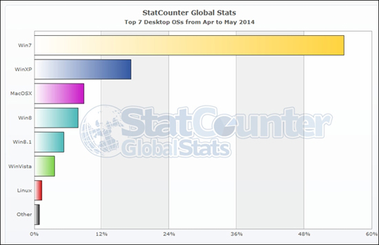 Netmarketshare приводит несколько другую статистику. По её оценкам, в конце апреля доля Windows XP составляла 26,29 % на рынке персональных компьютеров. В марте данная платформа занимала 27,69 % глобального рынка, а в апреле 2013-го — 38,31 %.