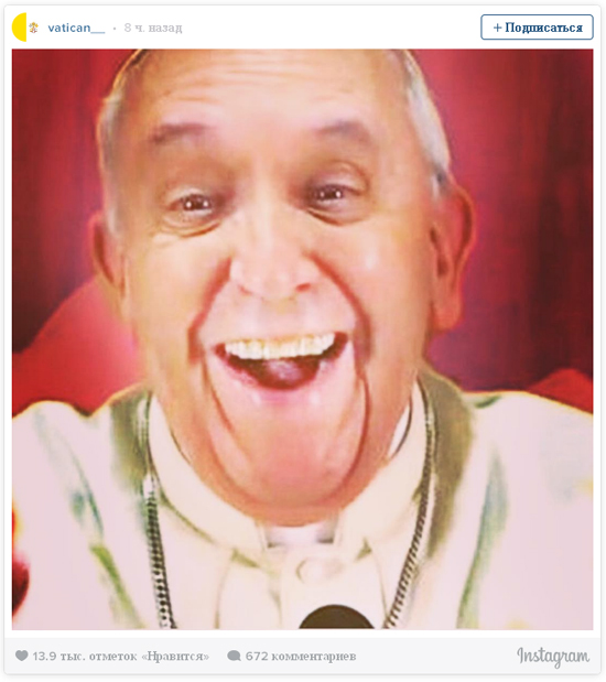 Фотография Франциска с подписью «первое селфи» набрала более 11 тыс. лайков.