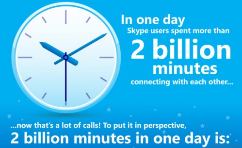 Как выяснилось, пользователи Skype общаются друг с другом в общей сложности свыше 2 млрд. минут в сутки. Во внимание принимаются пользователи, которые созваниваются друг с другом с помощью голосового сервиса или видеозвонков.