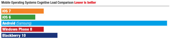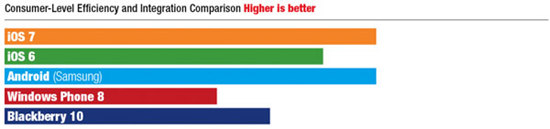 iOS 7 доступна всем без исключения пользователям в своей финальной версии уже почти неделю и людей уже успело сложиться мнение о ней. Pfeiffer Report сегодня опубликовали результаты исследования уровня удовлетворенности пользователей различными операционными системами. В опросах участвовали среднестатистические пользователи, а не технические гении и хакеры, а рассматривались 5 мобильных операционок: iOS 7, iOS 6, Android, Windows 8 и Blackberry 10.