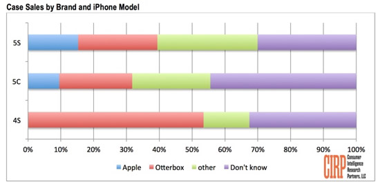 Согласно исследованиям Consumer Intelligence Research Partners, 76% покупателей iPhone используют для защиты своего устройства специальные чехлы, но при этом не уделяют большого внимания выбору производителя аксессуаров. Только 15% используемых чехлов для iPhone 5s являются официальным продуктом Apple, а в случае с iPhone 5c эта цифра составляет всего 10%.