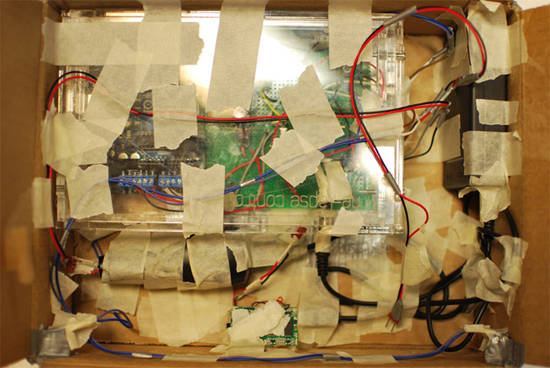 Внутри коробки надёжно зафиксировала схема Arduino с камера-модулем и таймером.
