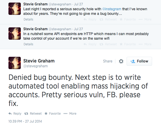 Представители компаний отказались выплатить Стиви Грэму деньги. В Facebook отметили, что ранее уже получали сообщения о наличии подобной уязвимости и «работают над её устранением».